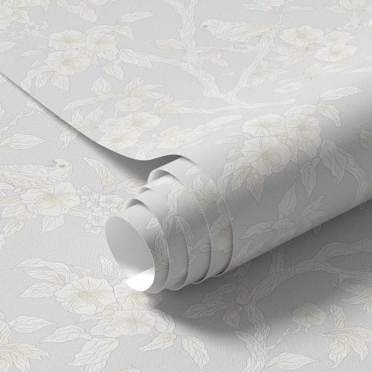 Tapet Ljust mönster av fåglar på grenar, pastellfärgad palett, klassisk Nr. a00230