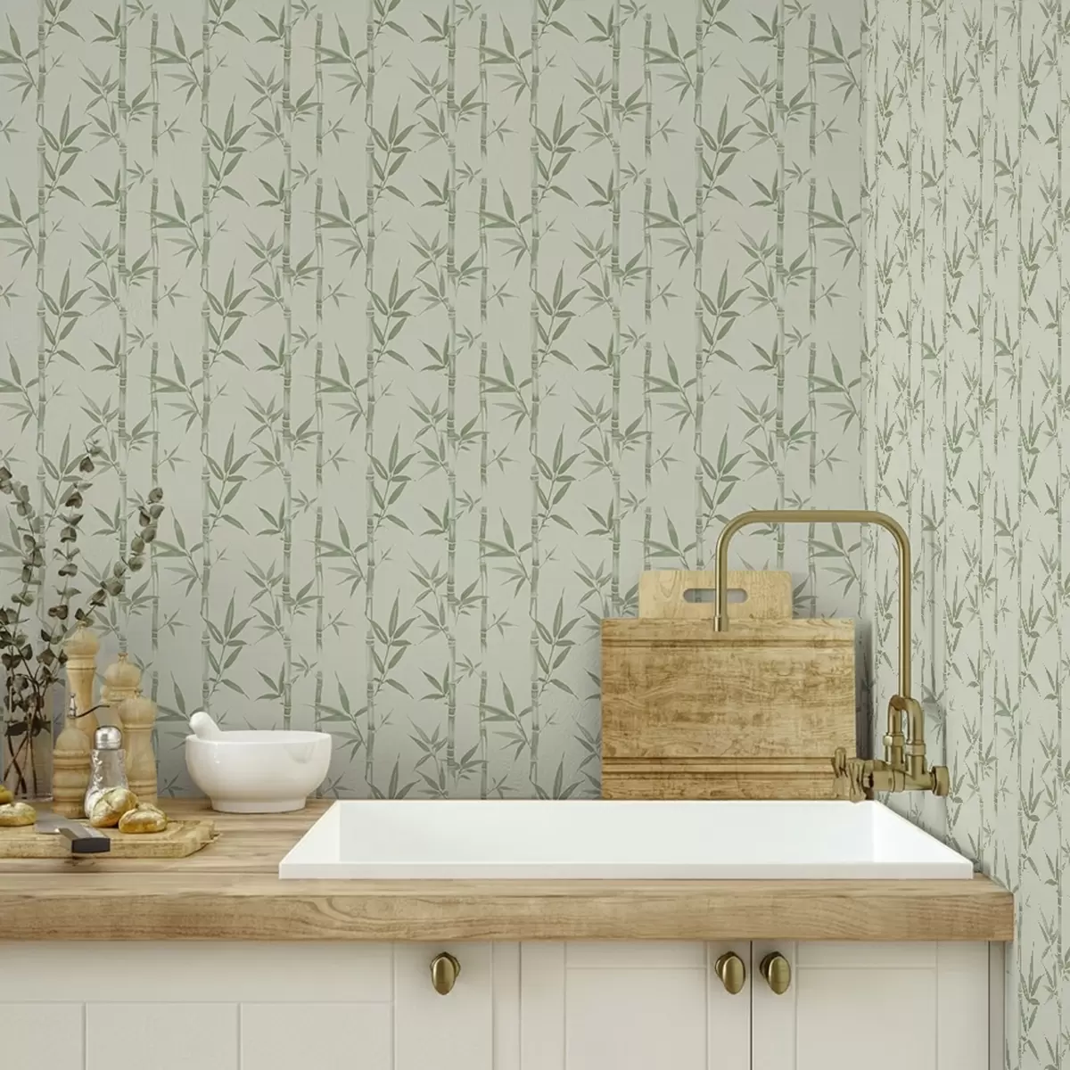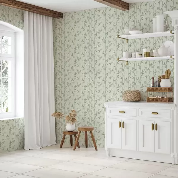 Tapet Ljusgrön bambu på mjuk pastellfärgad bakgrund Nr. a00236v1