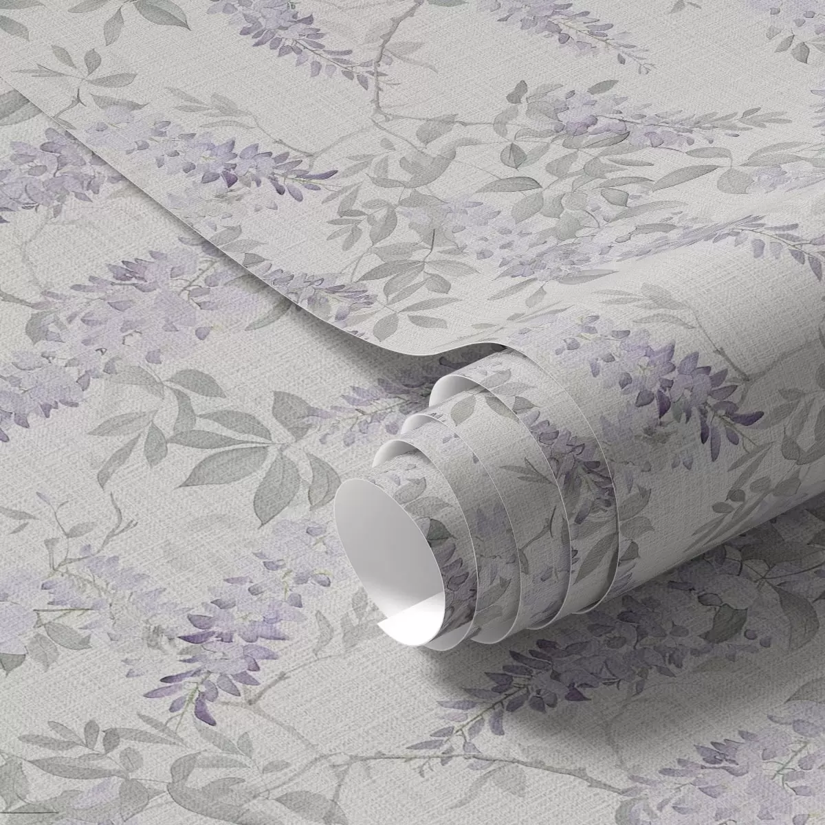 Tapet Lila blåregn på vit bakgrund, akvarellstil Nr. a00239