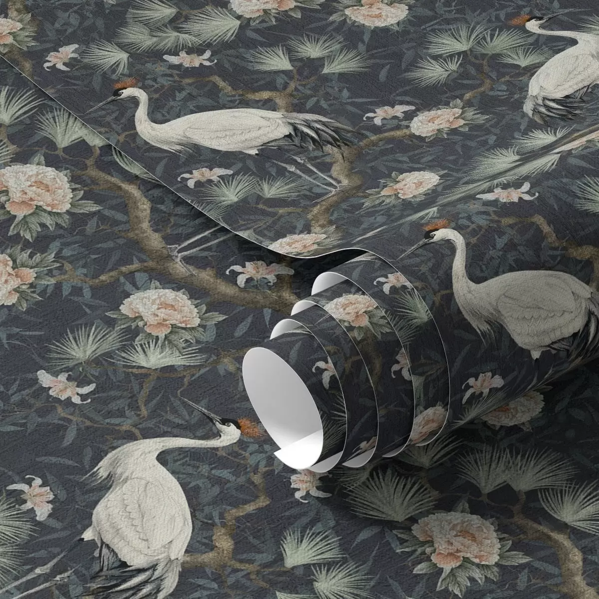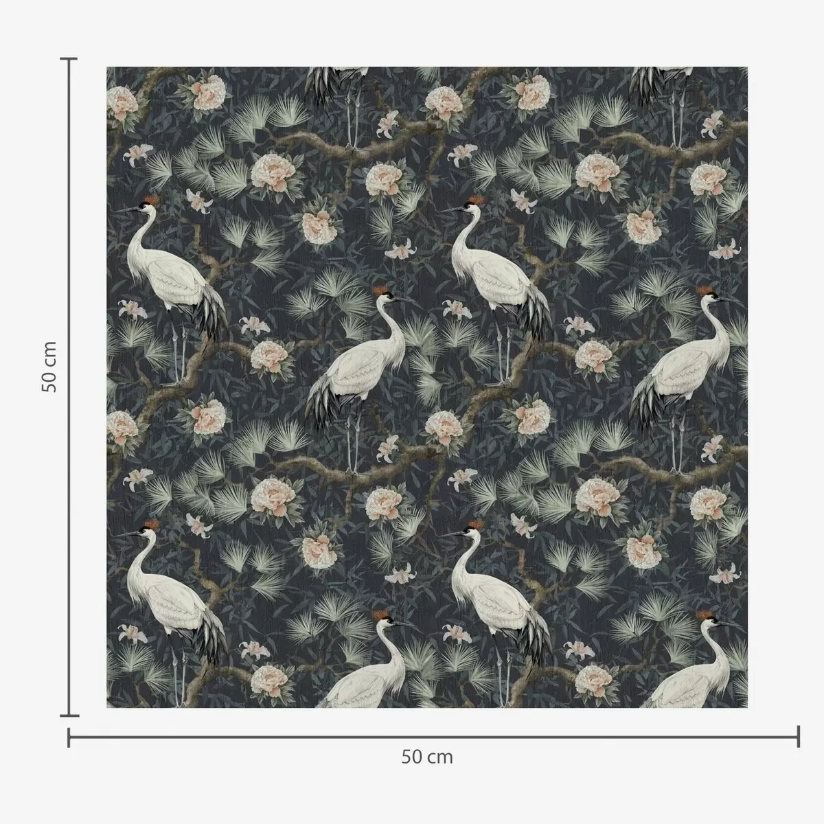 Tapet Tranor bland tallar och pioner på en mörk bakgrund Nr. a00241