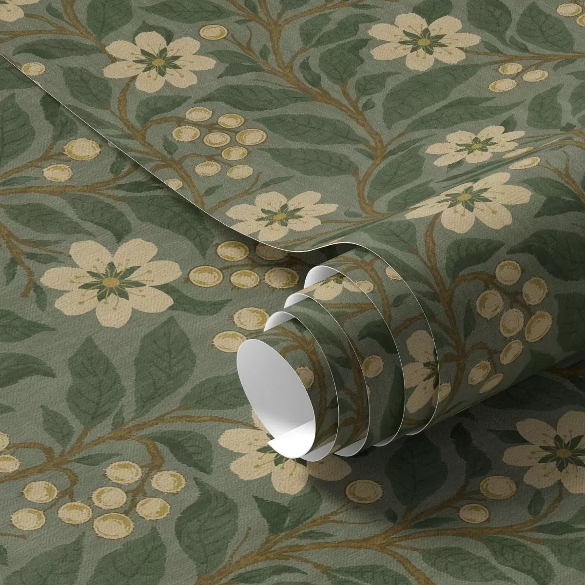 Tapet Gula blommor och bär på en grön bakgrund Nr. a00242