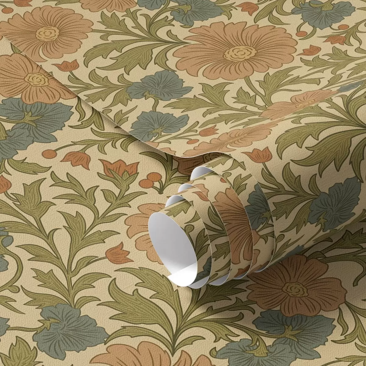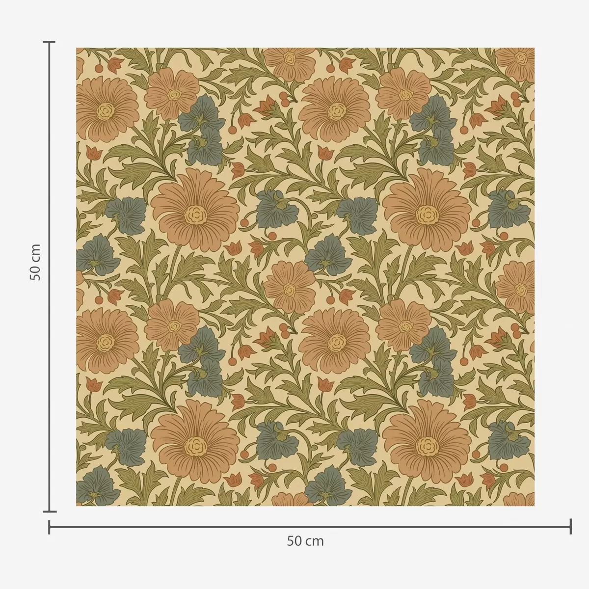 Tapet Retromönster med orange och blå blommor Nr. a00245