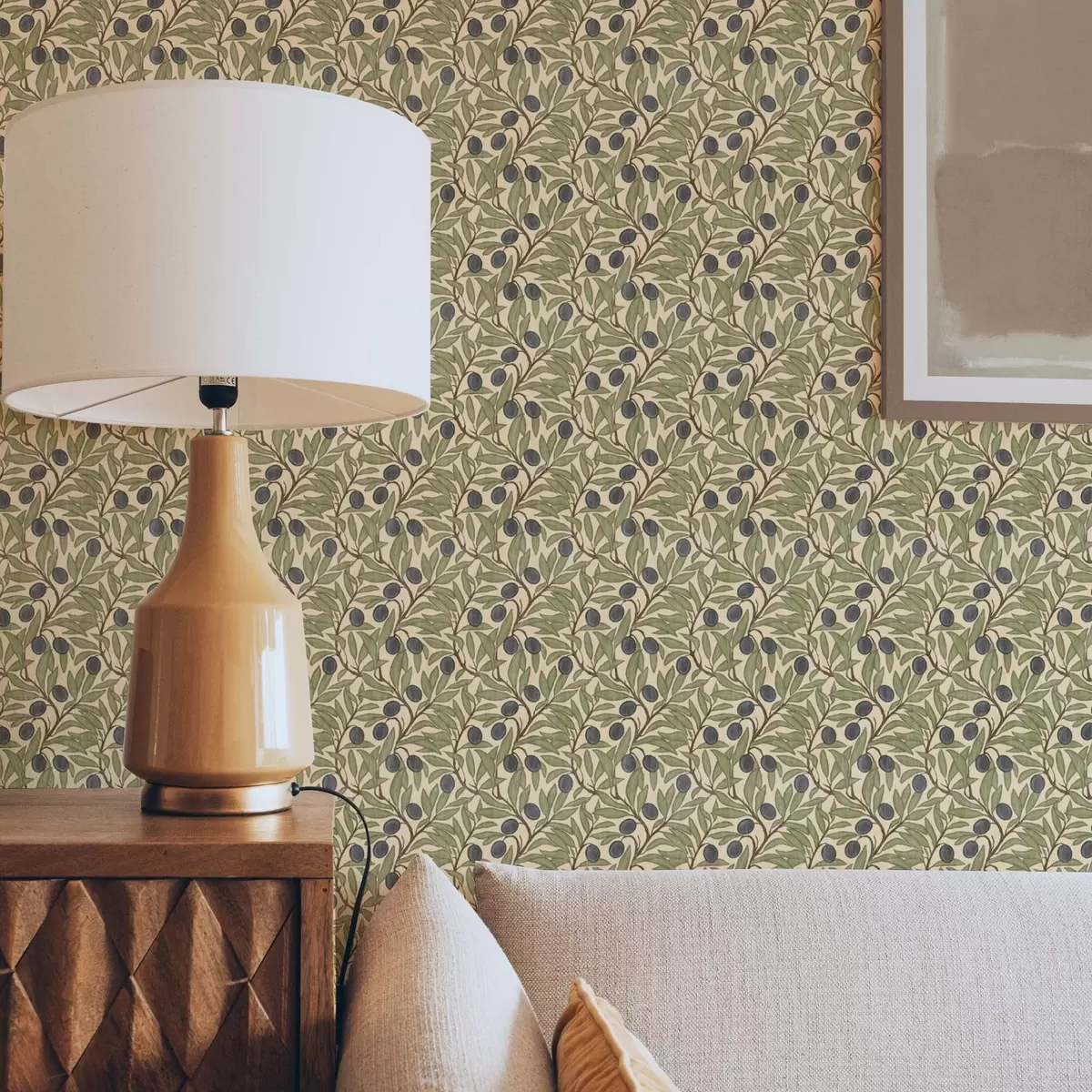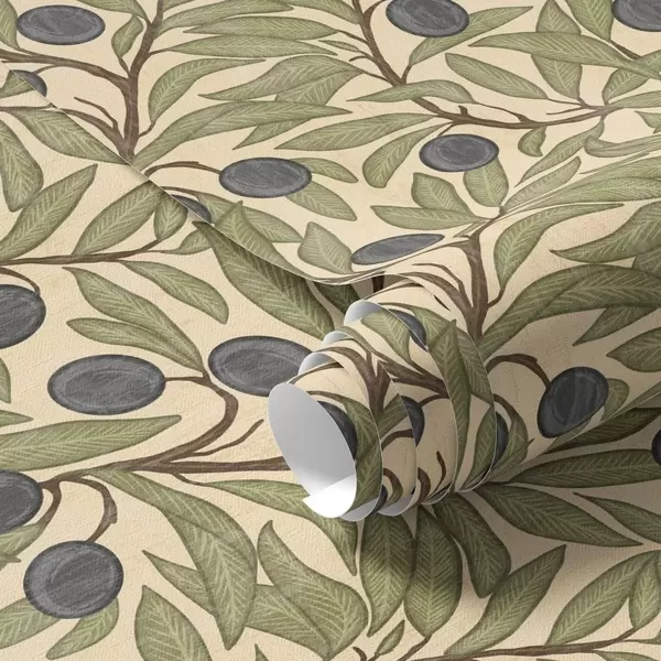 Tapet Oliver på grenar i varm olivpalett Nr. a00246