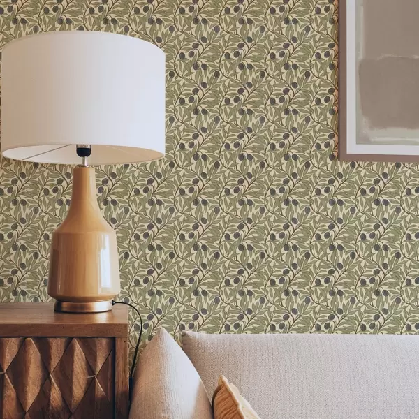 Tapet Oliver på grenar i varm olivpalett Nr. a00246