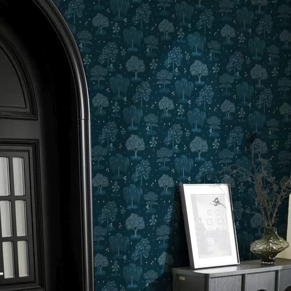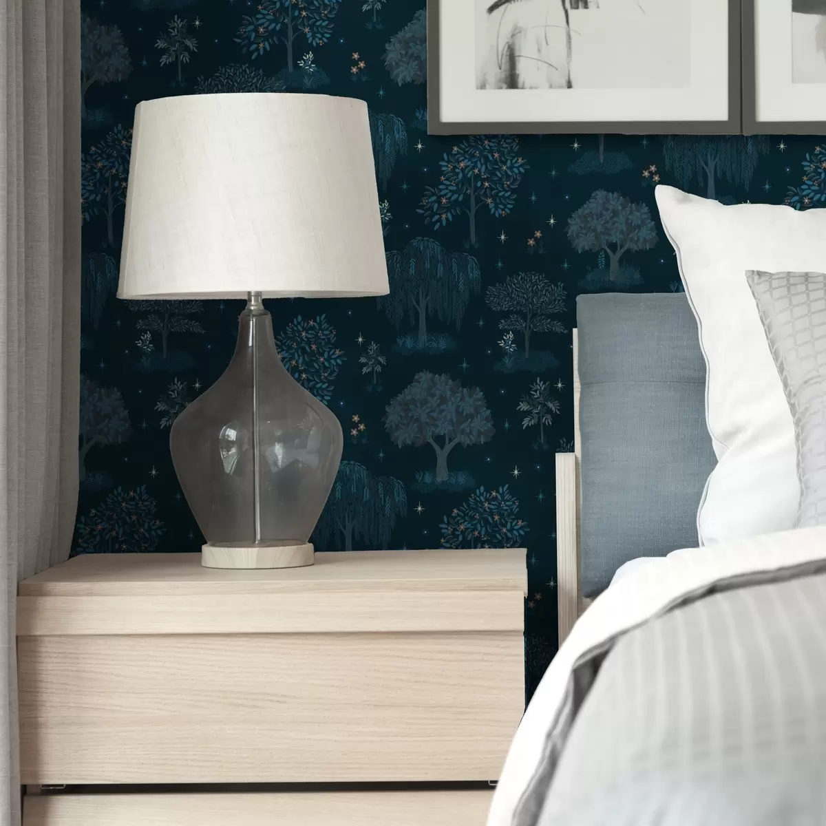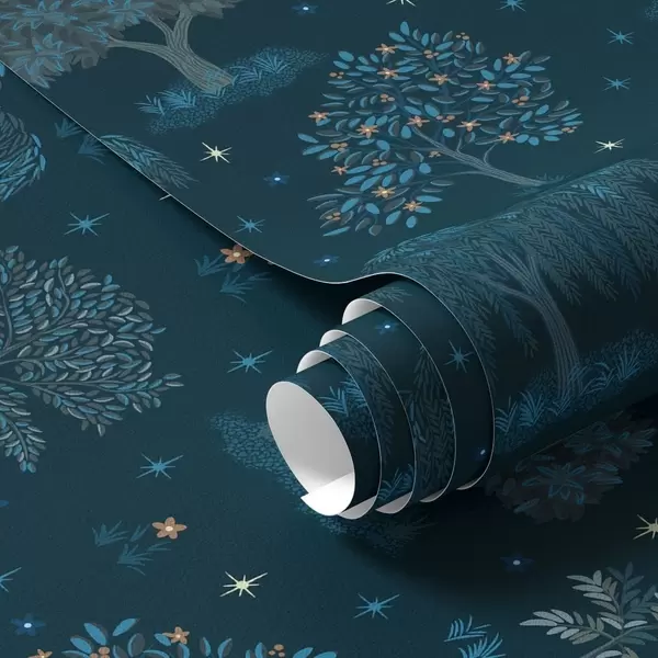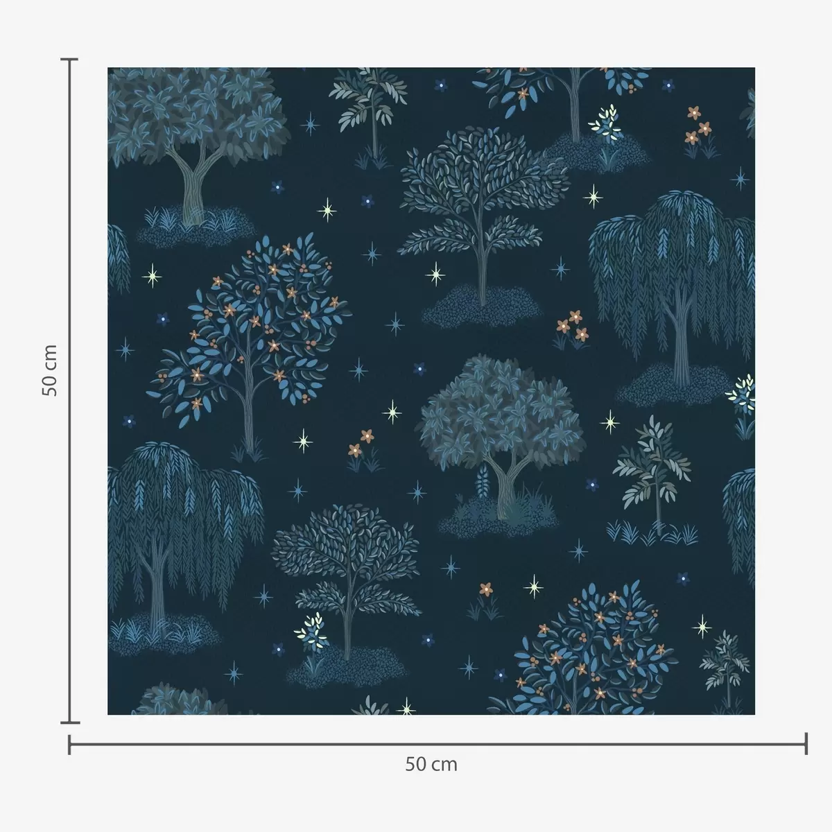 Tapet Sagolik nattskog med stjärnor och dekorativa träd Nr. a00248
