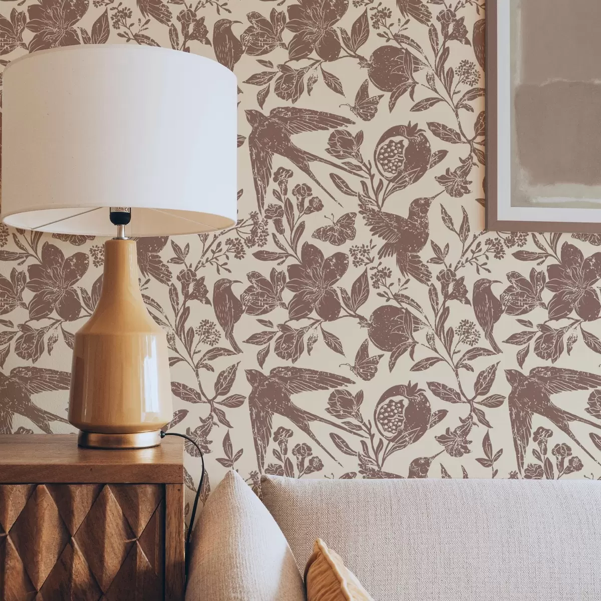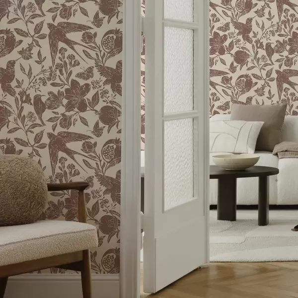 Tapet Fåglar, granatäpplen och blommor i vintagestil Nr. a00263