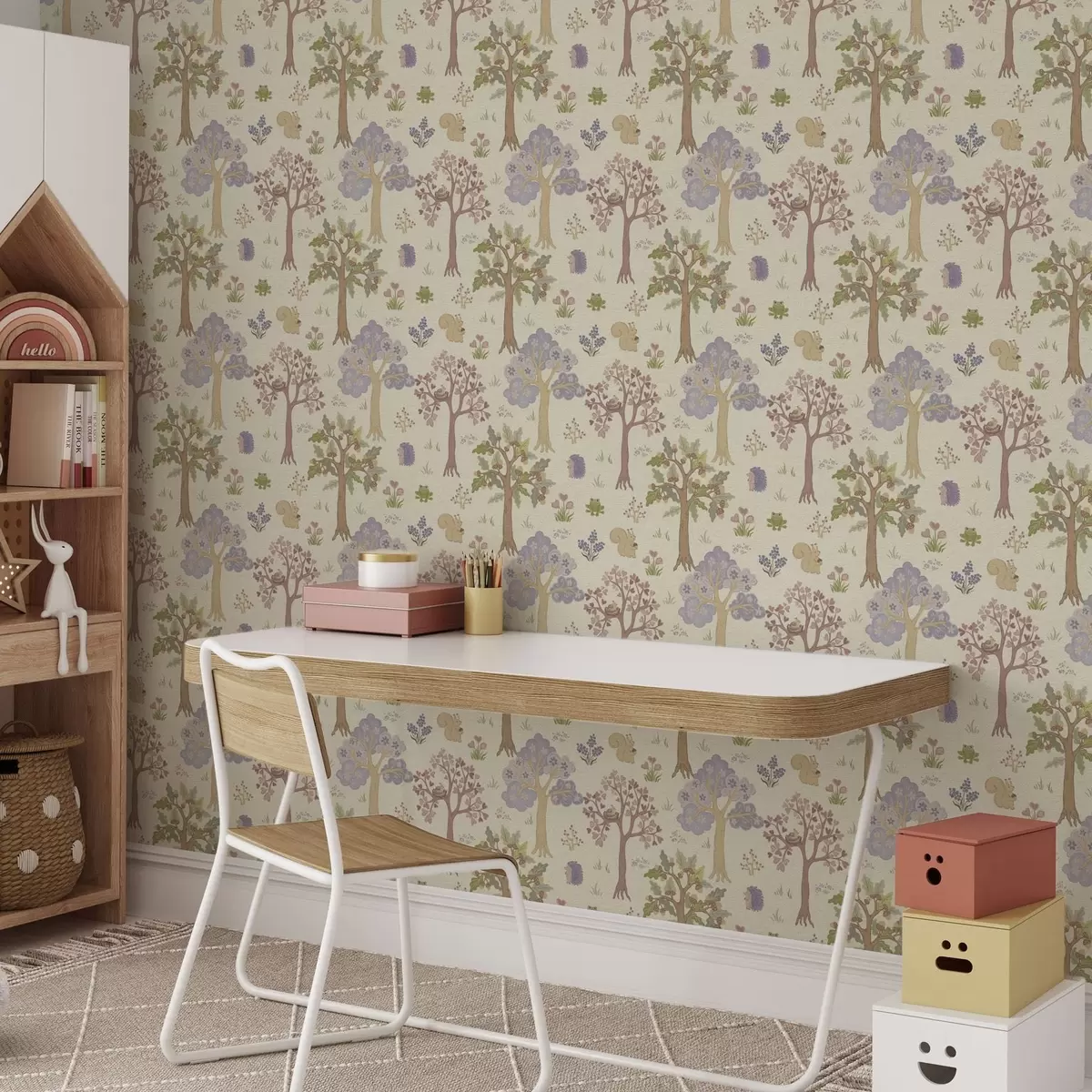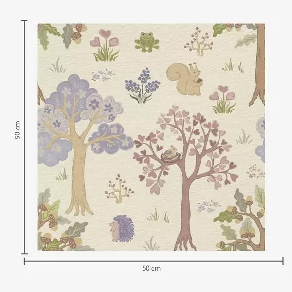Tapet Älvskog med djur i barnslig stil Nr. a00264