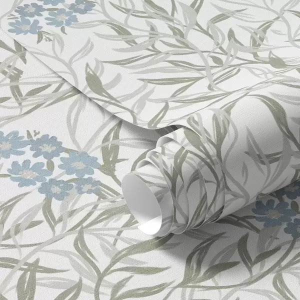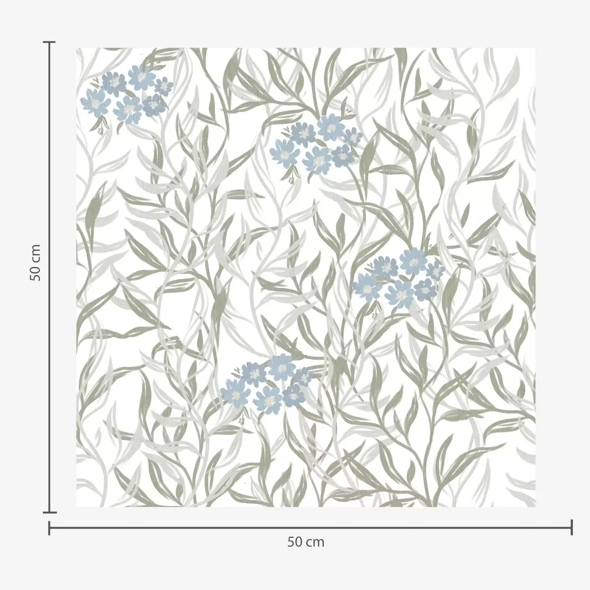 Tapet Ljust botaniskt tryck med blå blommor Nr. a00268