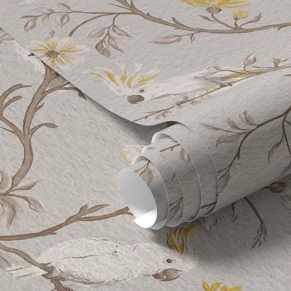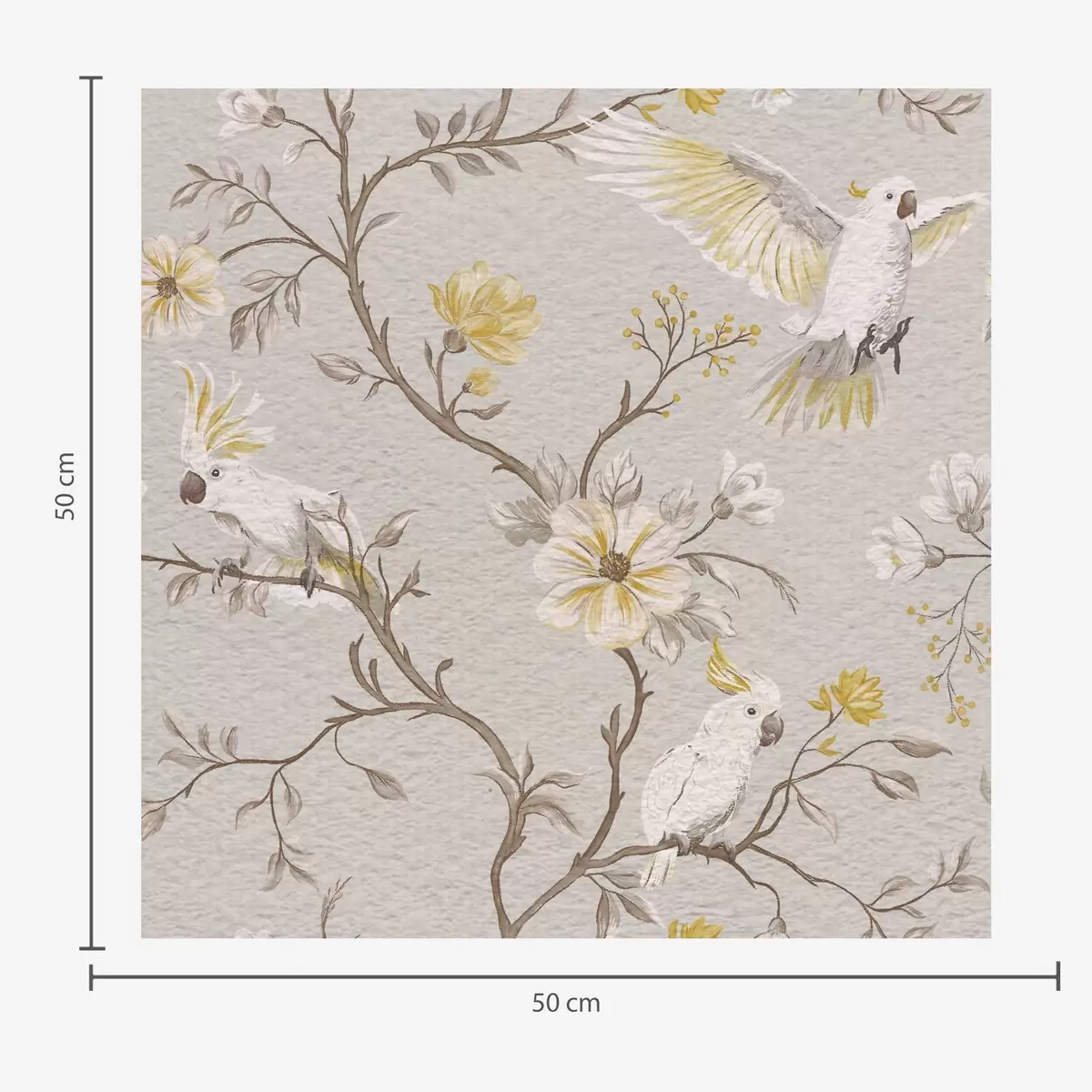 Tapet Papegojor och gula blommor mot ljus bakgrund Nr. a00270
