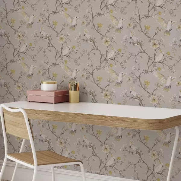 Tapet Papegojor och gula blommor mot ljus bakgrund Nr. a00270