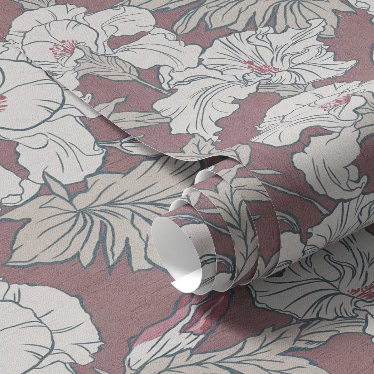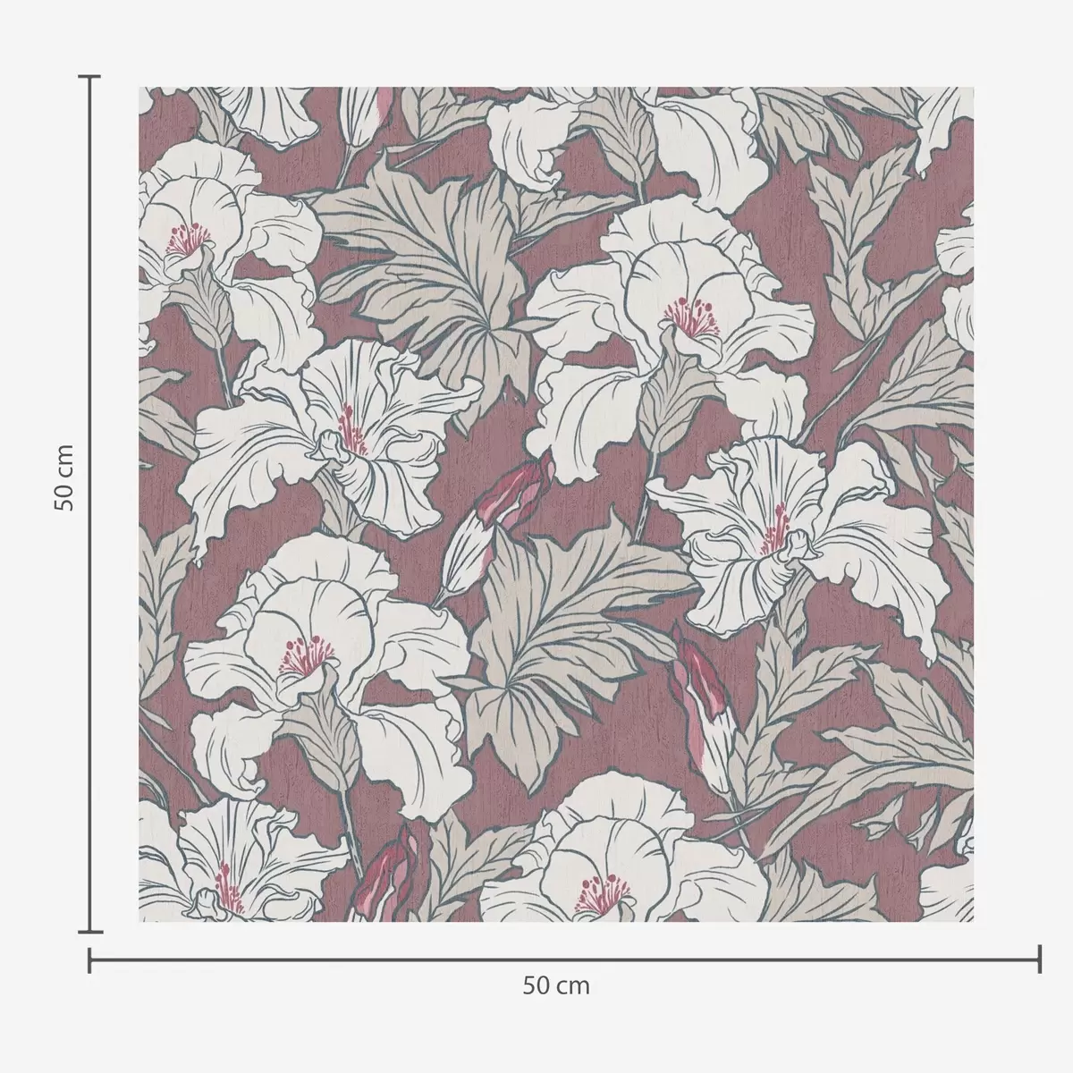 Tapet Vit hibiskus på rosa bakgrund med röda knoppar Nr. a00272