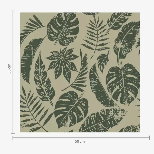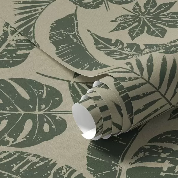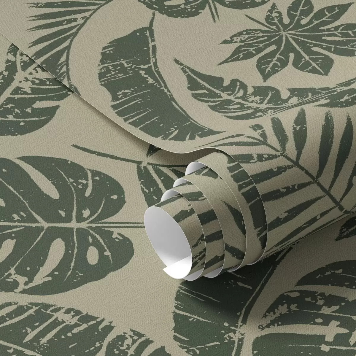 Tapet Tropiska blad i linoleumsnitt, grönt på gult Nr. a00274