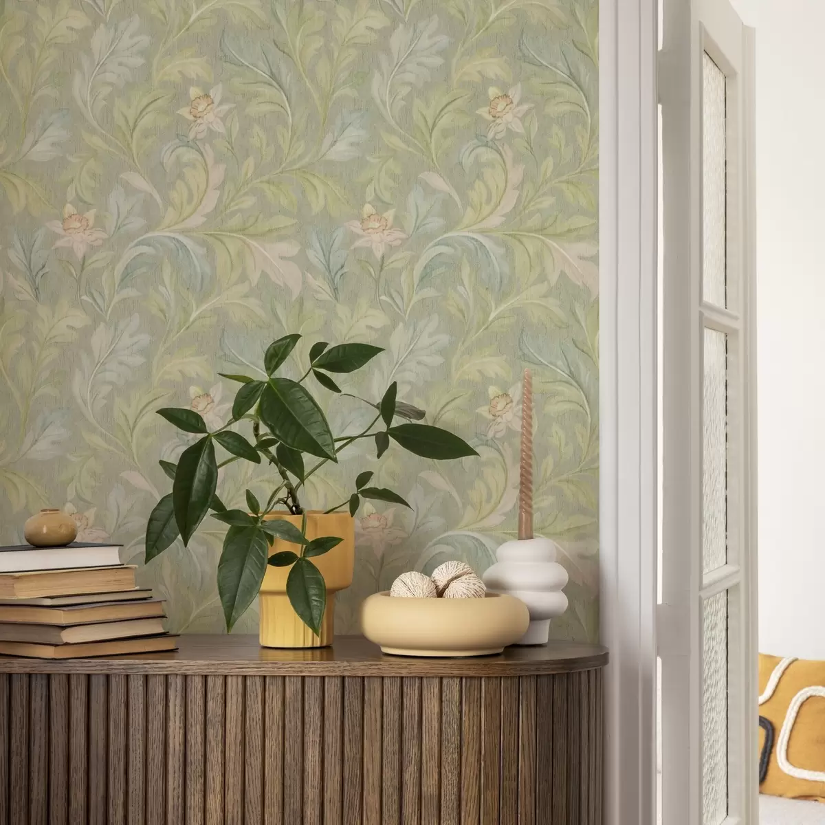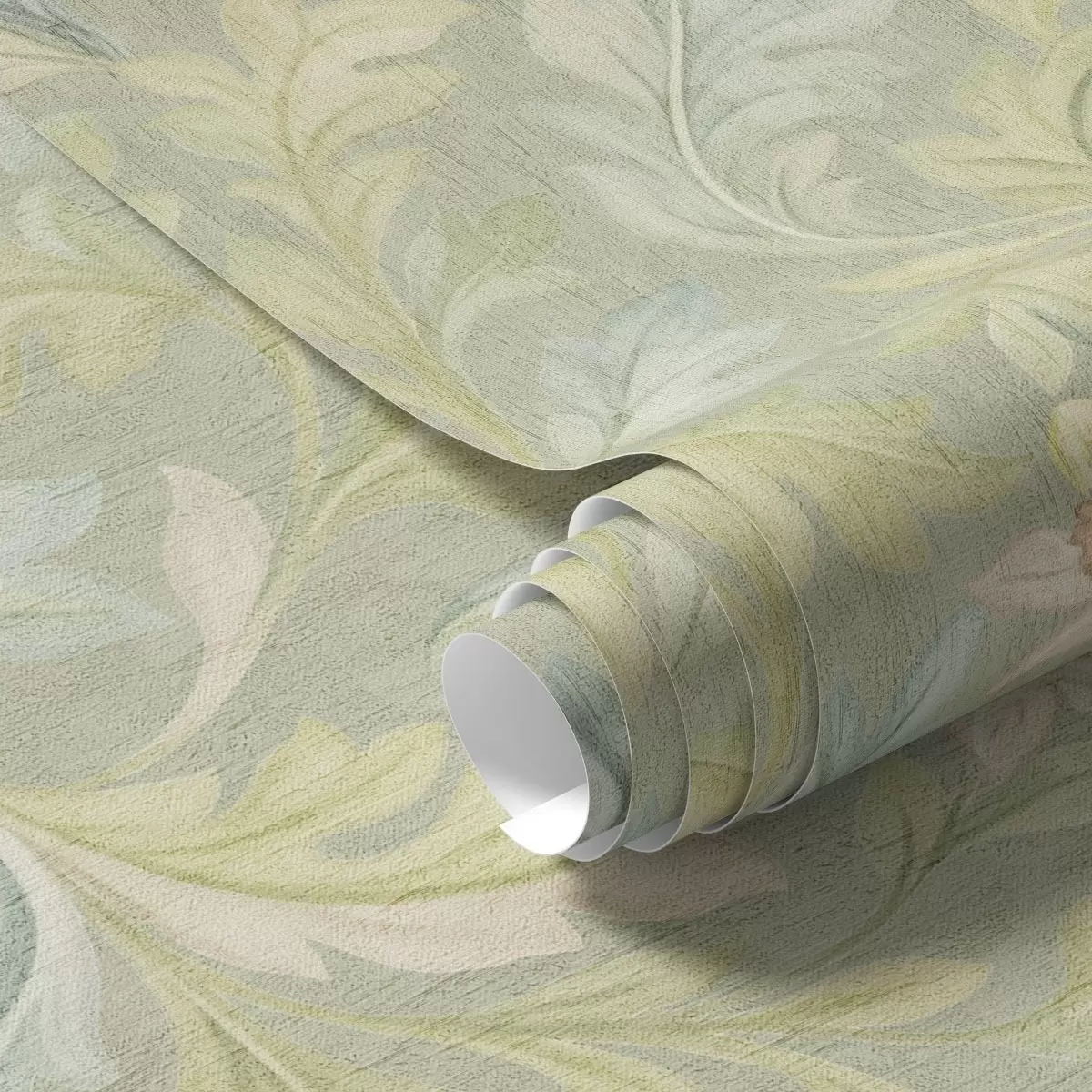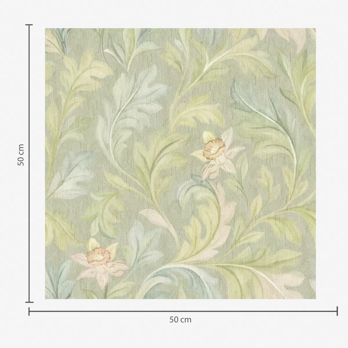 Tapet Vintagelöv på grön bakgrund i pastellfärger Nr. a00277