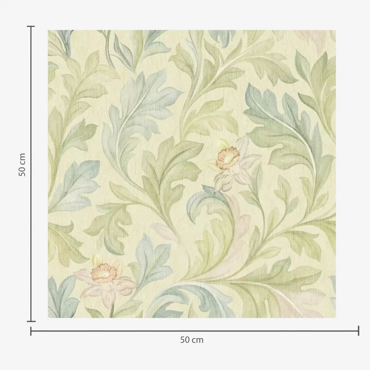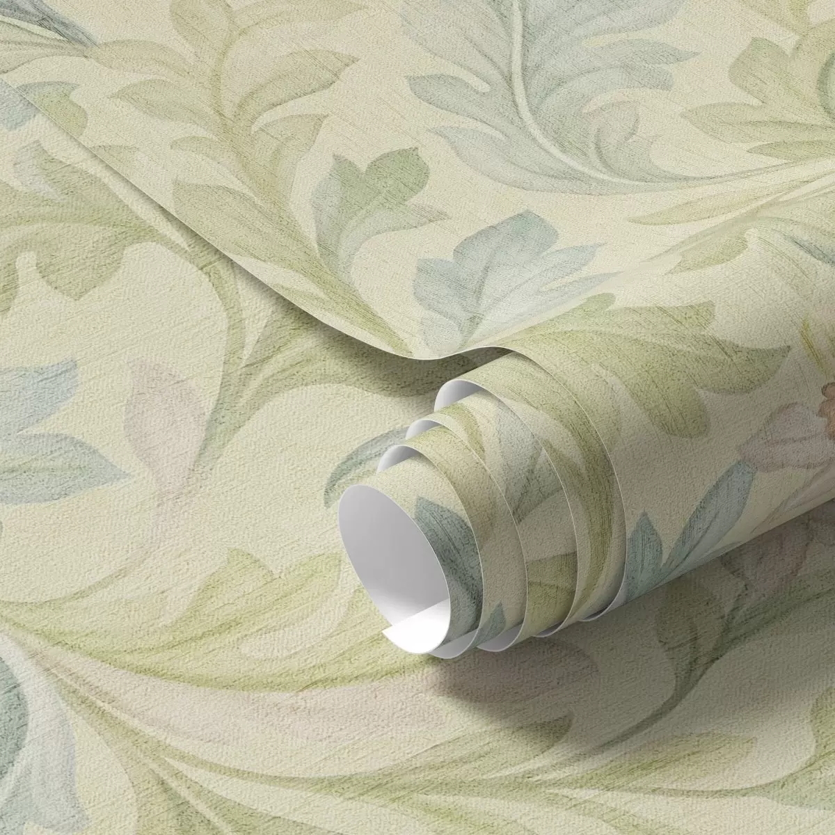 Tapet Vintagelöv på gulaktig bakgrund, mjuka färger Nr. a00277v1