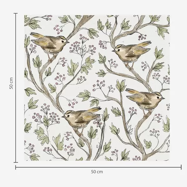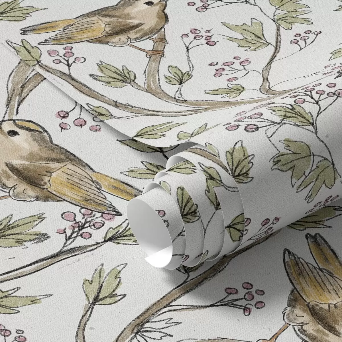 Tapet Fåglar på grenar med blad och bär mot en vit bakgrund Nr. a00283