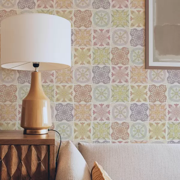 Tapet Prydnadsföremål av färgade geometriska plattor Nr. a00284
