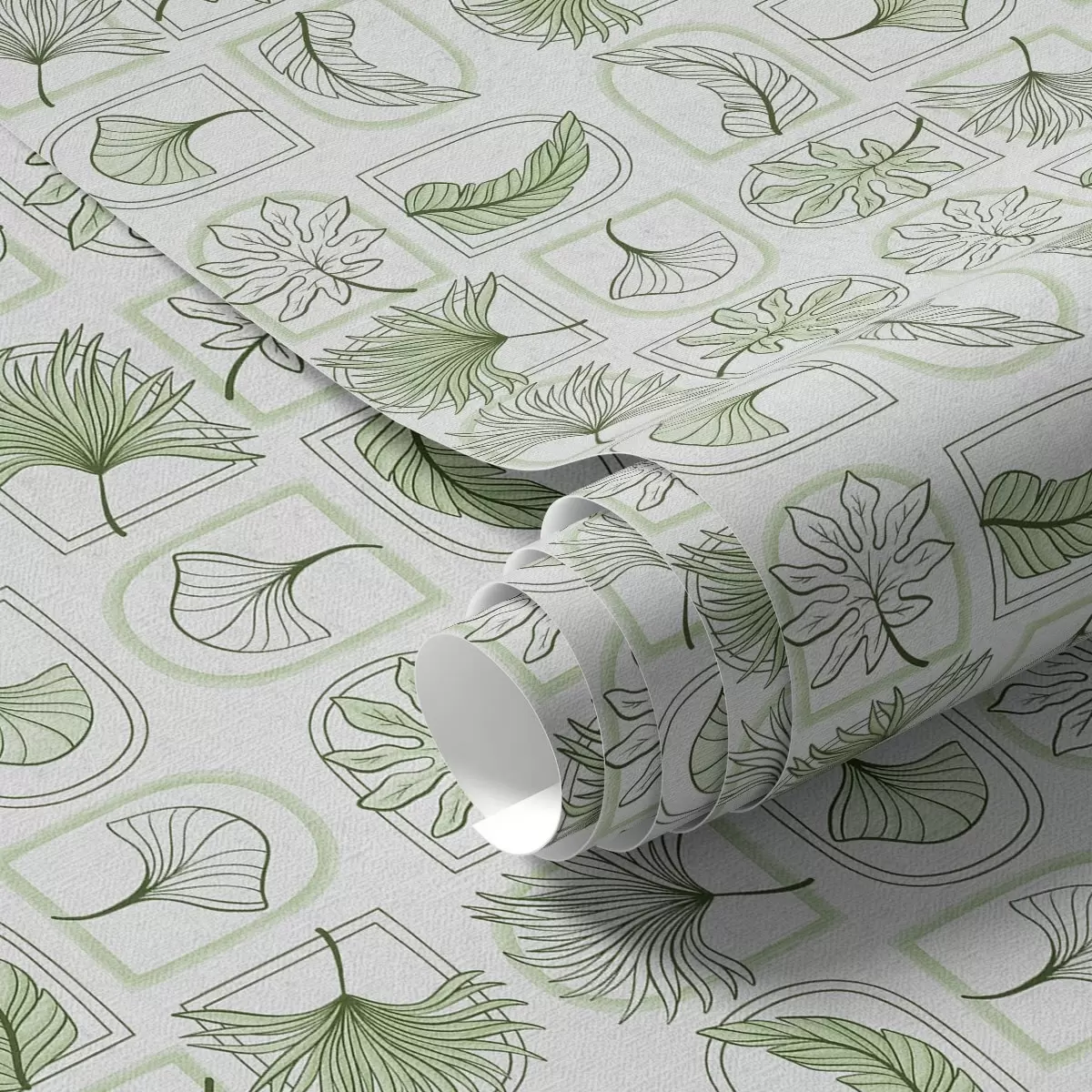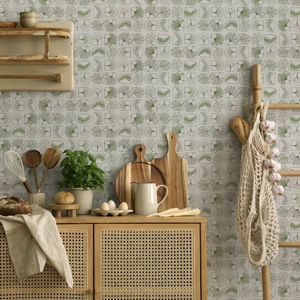 Tapet Grafiskt mönster med gröna blad i rutor Nr. a00287