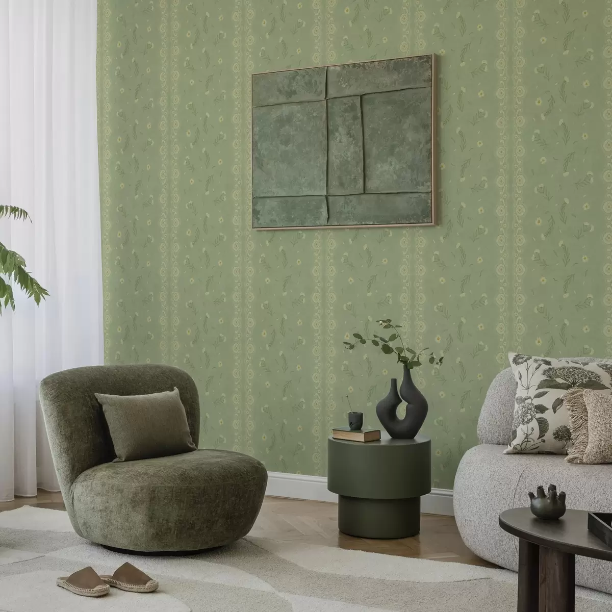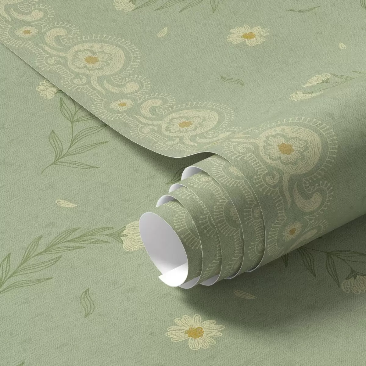 Tapet Grön bakgrund med prästkragar och spetskant Nr. a00291