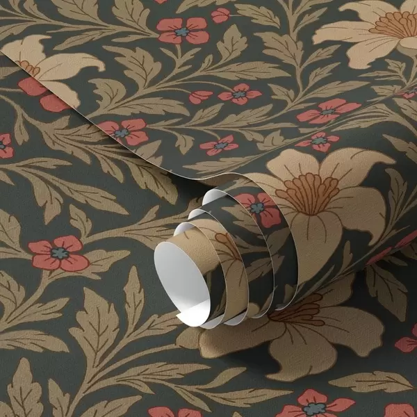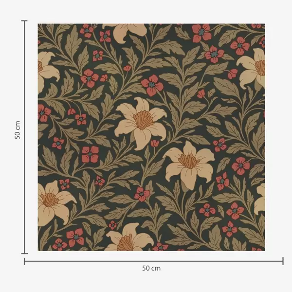 Tapet Mörk bakgrund med gula och röda blommor i jugendstil Nr. a00293