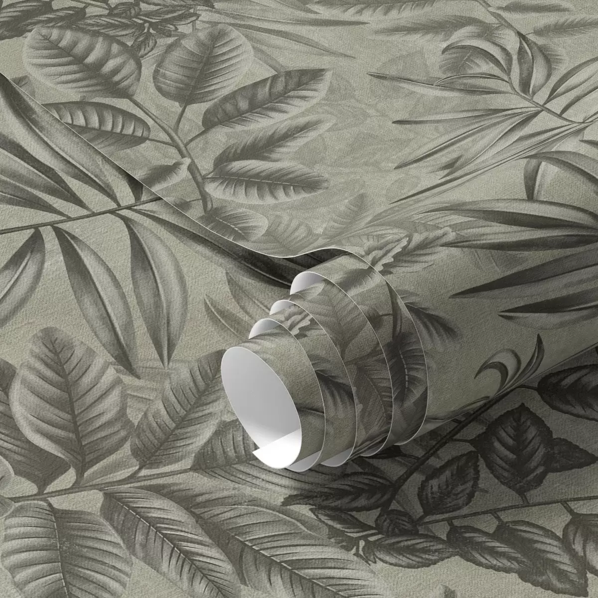 Tapet Grå tropiska blad i olika former på en vintagebakgrund Nr. a00297