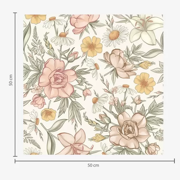Tapet Tusenskönor, pioner, liljor och blad i delikata färger Nr. a00299