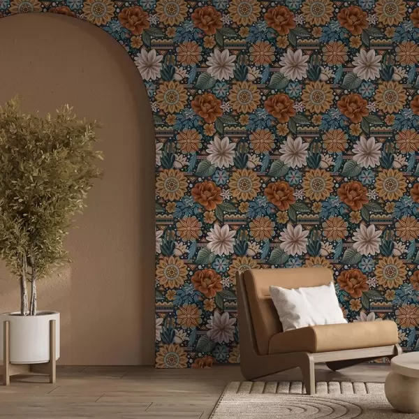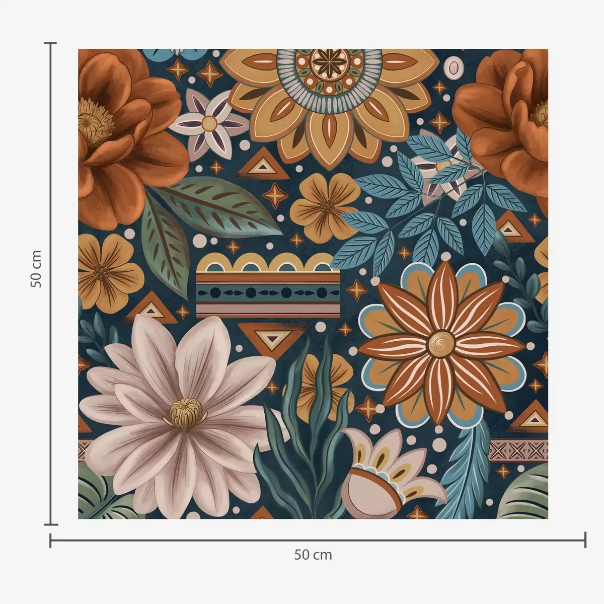 Tapet Ljusa dekorativa blommor med geometriska element Nr. a00305