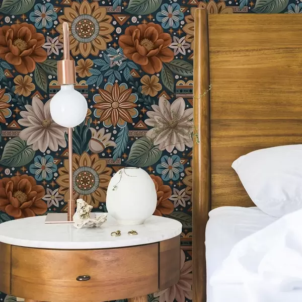 Tapet Ljusa dekorativa blommor med geometriska element Nr. a00305