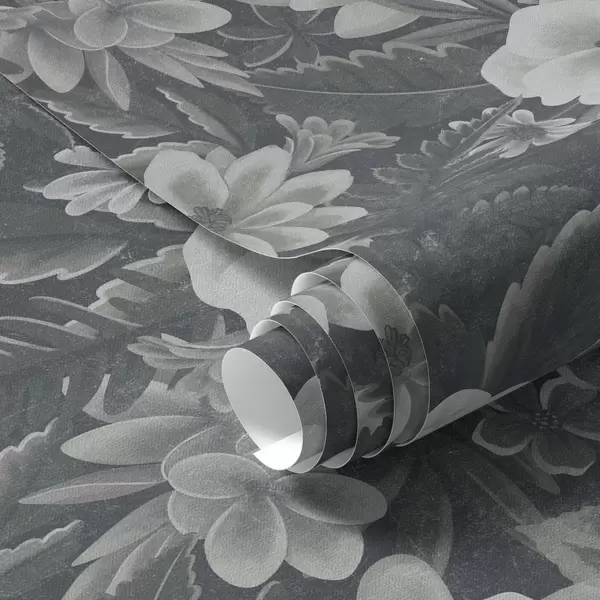 Tapet Grått och och vitt blommönster med retroeffekt Nr. a00307