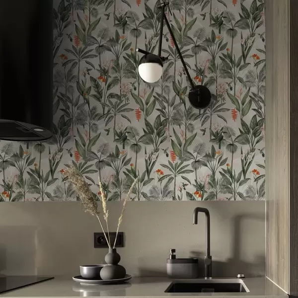 Tapet Tropiska fåglar bland palmblad Nr. a00308