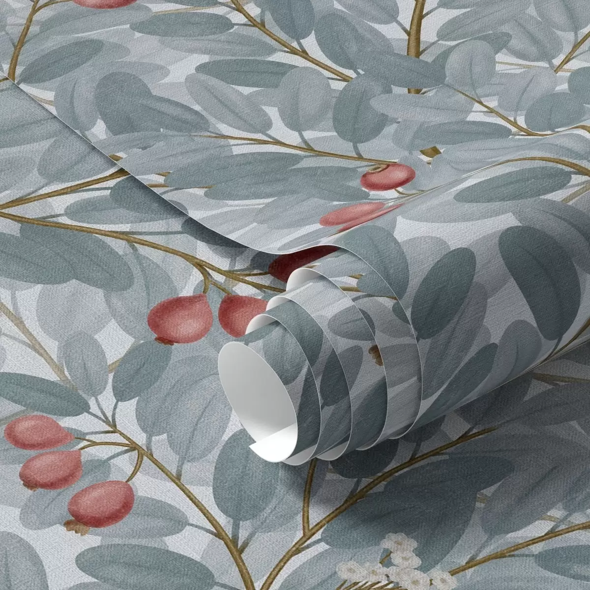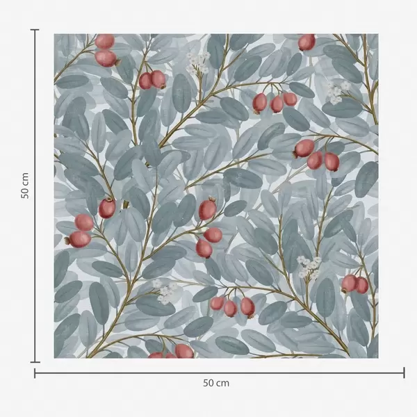 Tapet Blå blad med kvistar av röda bär Nr. a00309