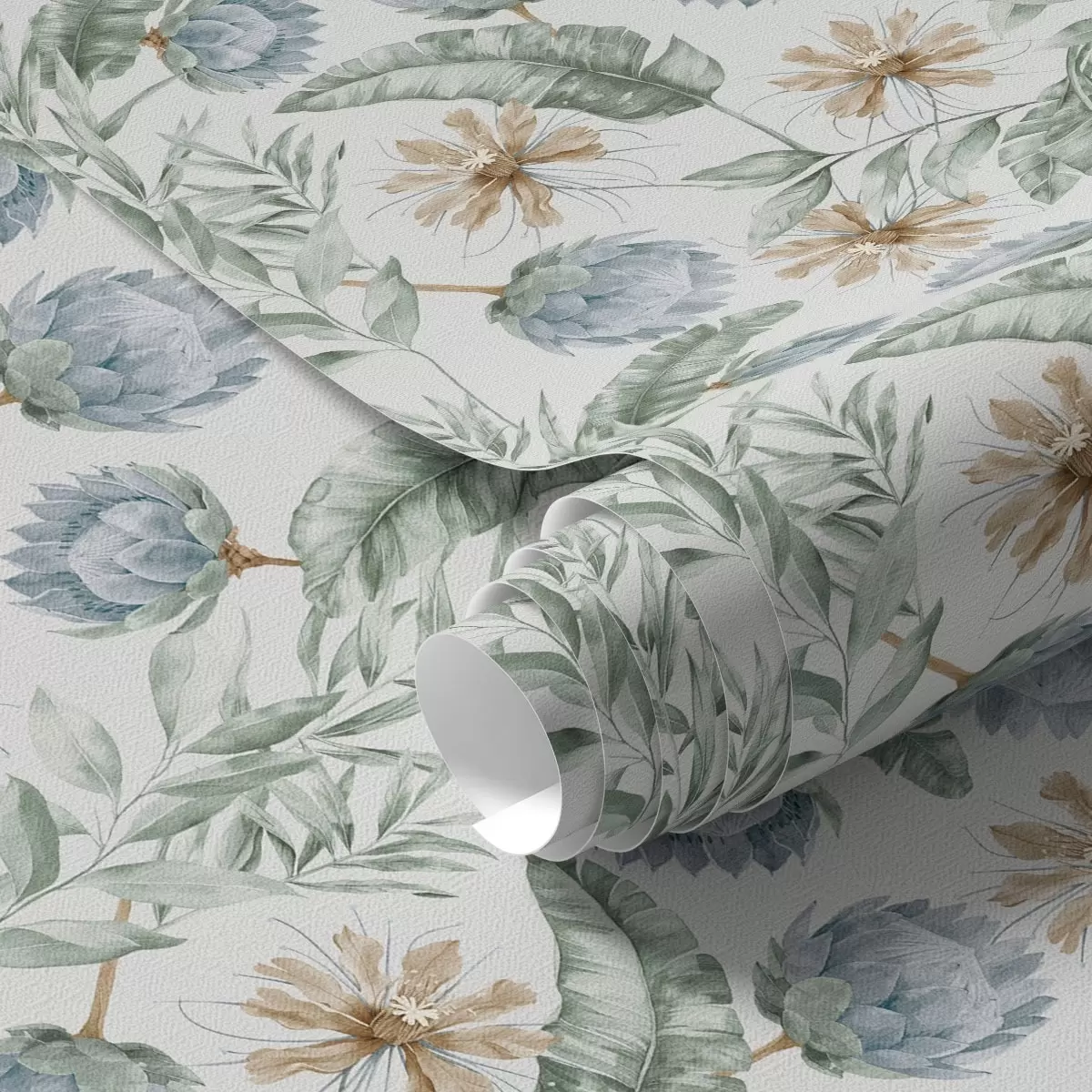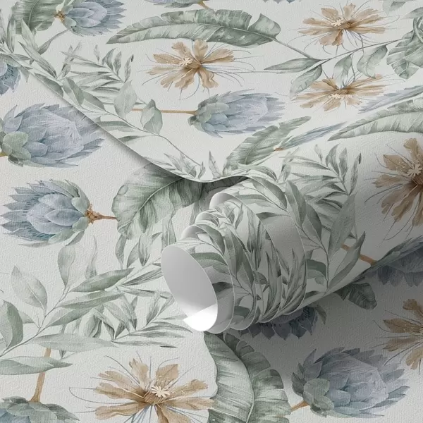 Tapet Botaniskt mönster med kronärtskockor och tropiska blad Nr. a00340