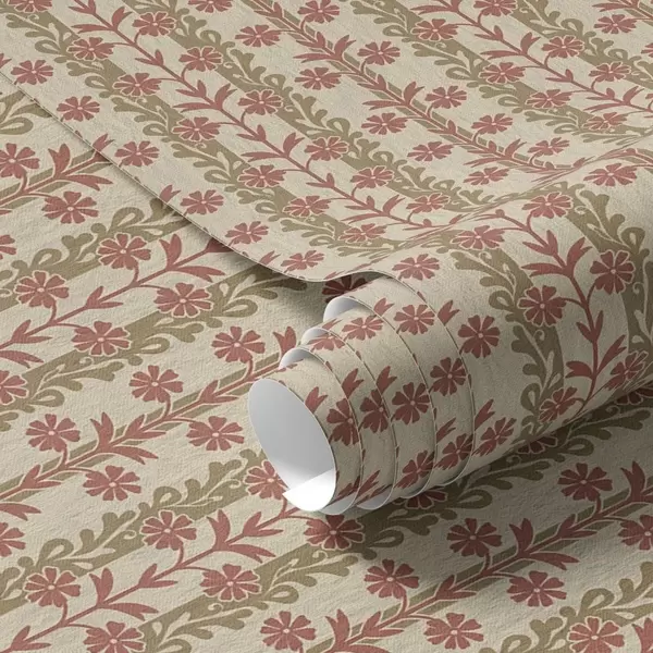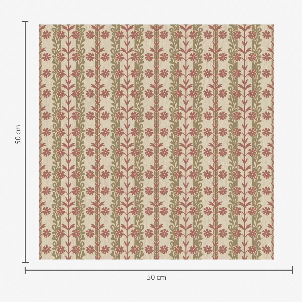 Tapet Randig prydnad med röda blommor Nr. a00341