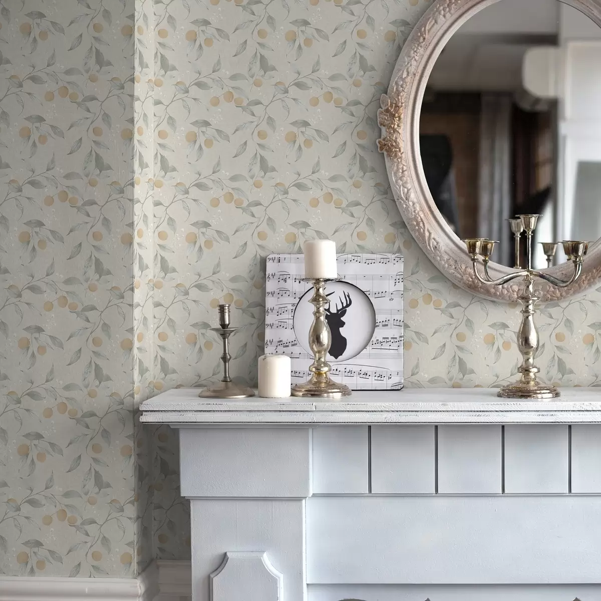 Tapet Ljusa grenar med orange bär Nr. a00344