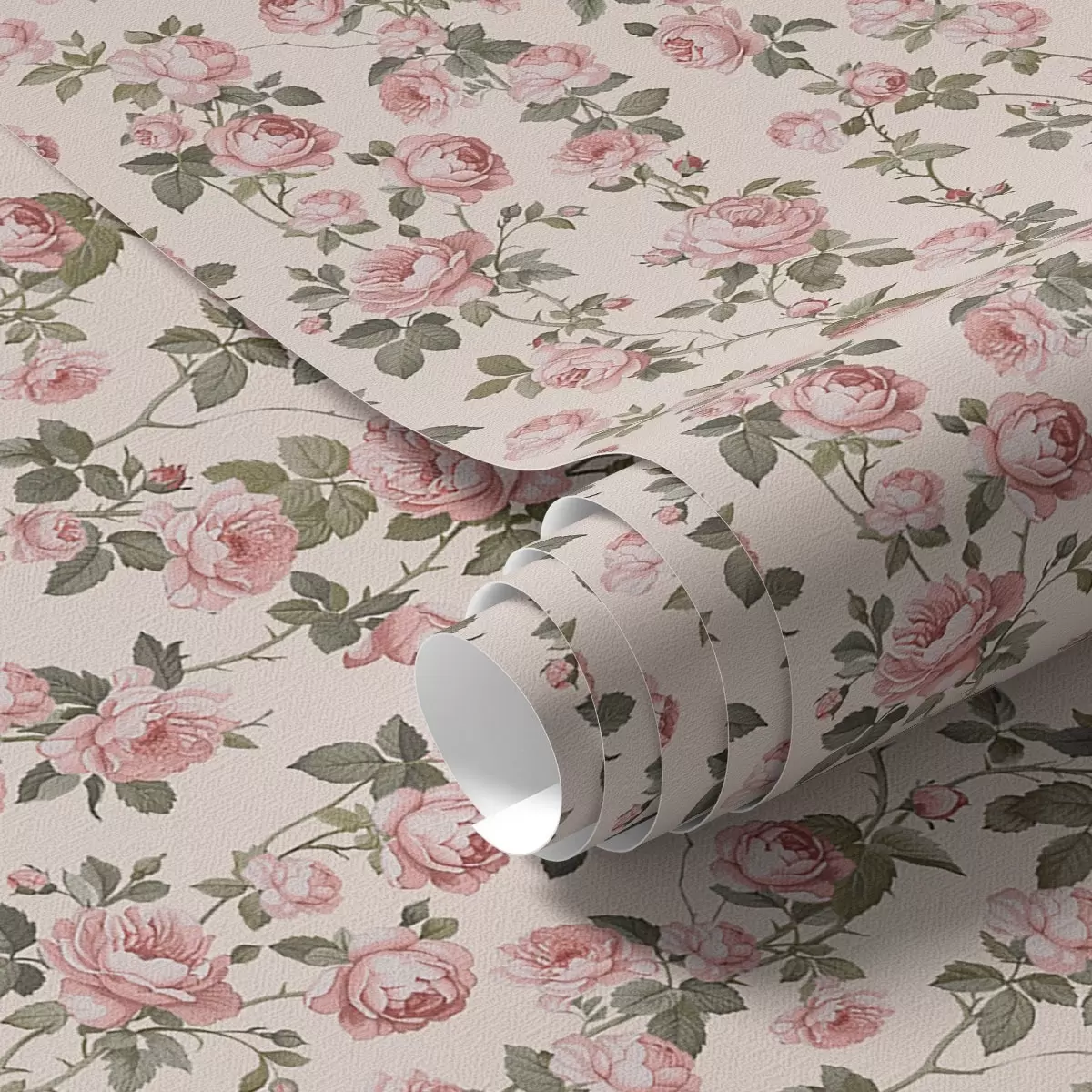 Tapet Rosa rosor på en beige bakgrund Nr. a00346