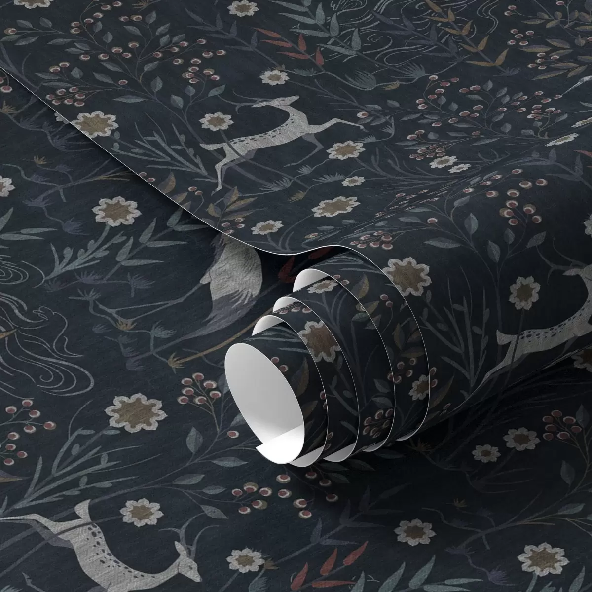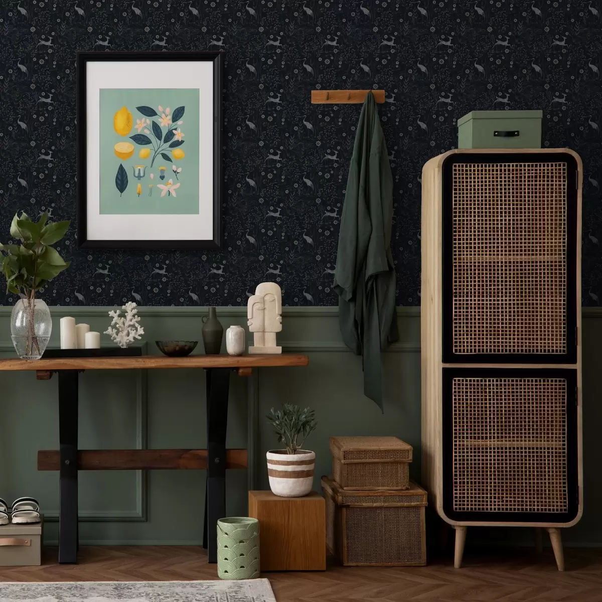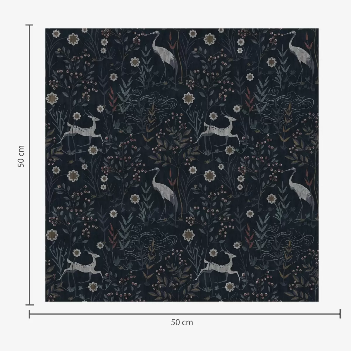 Tapet Mörk bakgrund med vita fåglar och hjortar Nr. a00363
