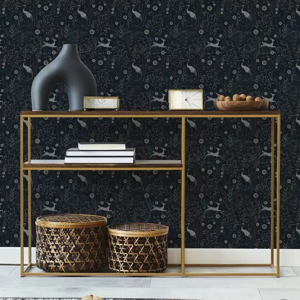 Tapet Mörk bakgrund med vita fåglar och hjortar Nr. a00363