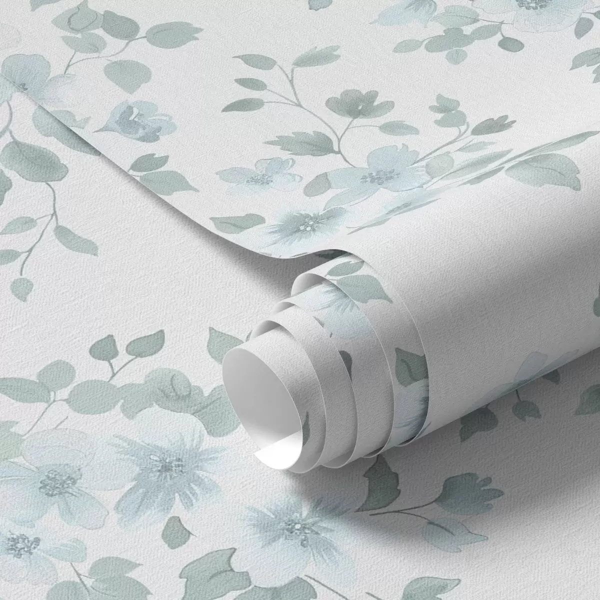 Tapet Ljusblå blommor på en vit bakgrund, akvarellstil Nr. a00364