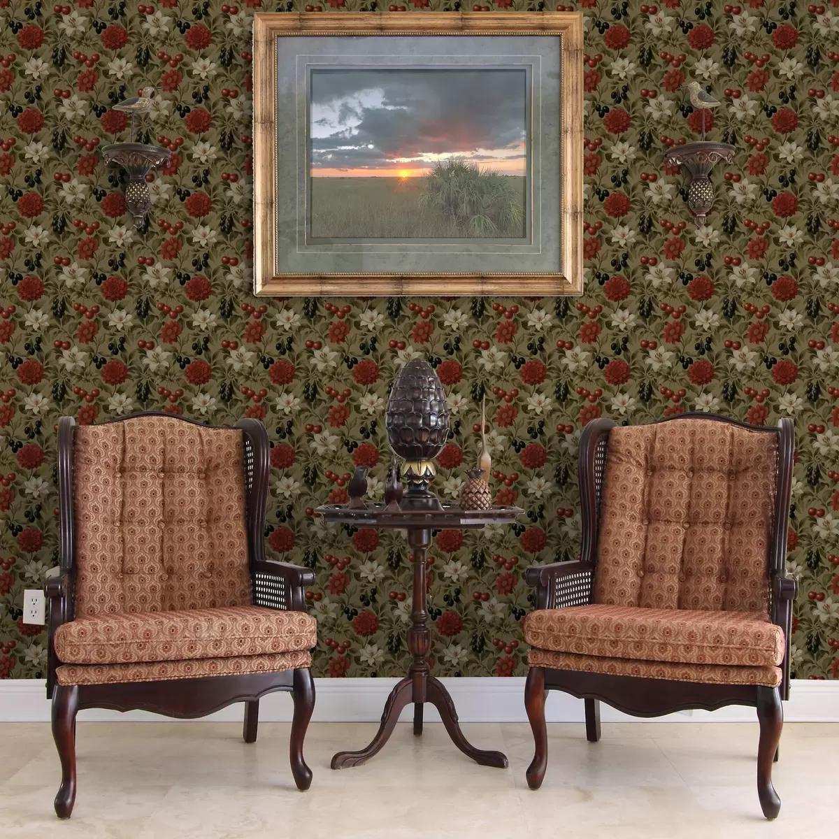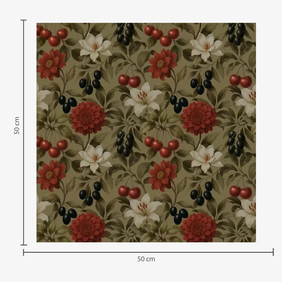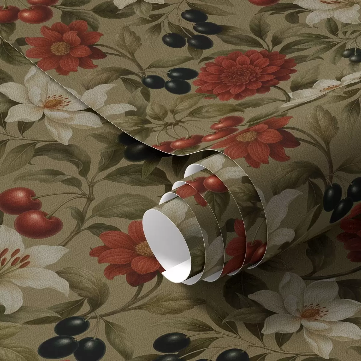 Tapet Körsbär, blommor och svarta oliver Nr. a00384