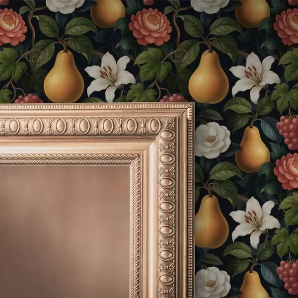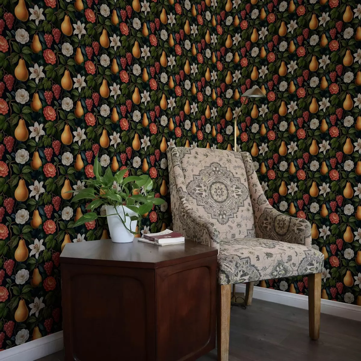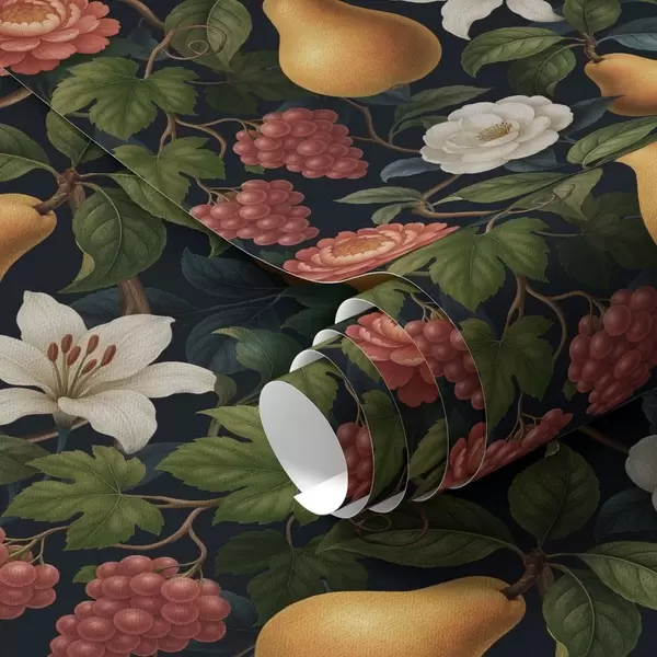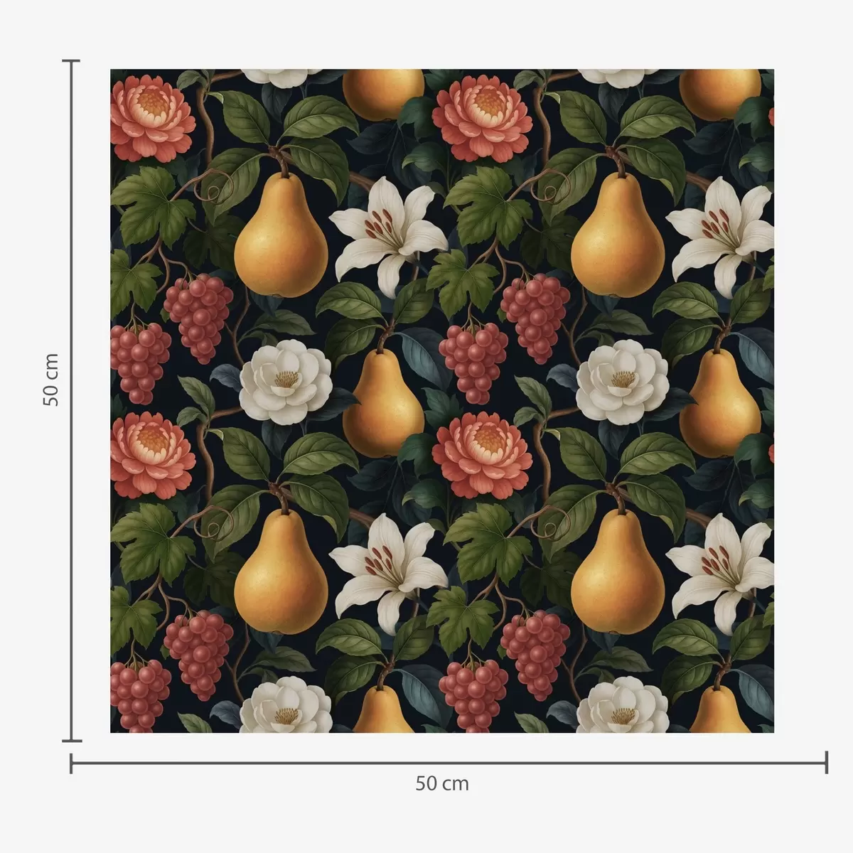 Tapet Barocka frukter och blommor på en dramatisk mörk bakgrund Nr. a00387