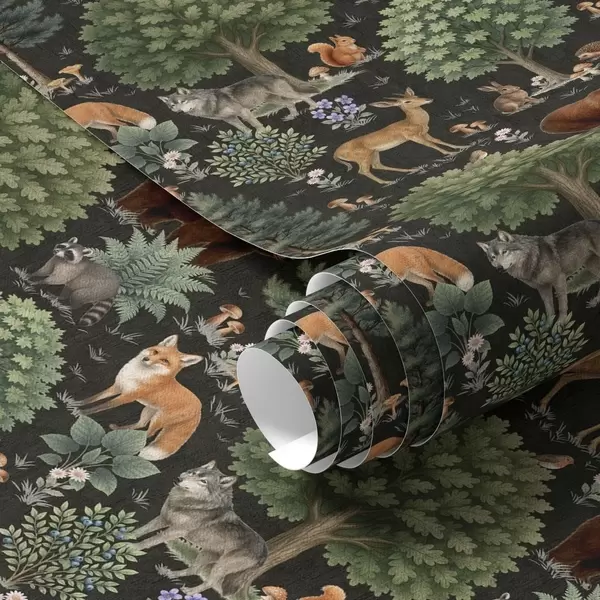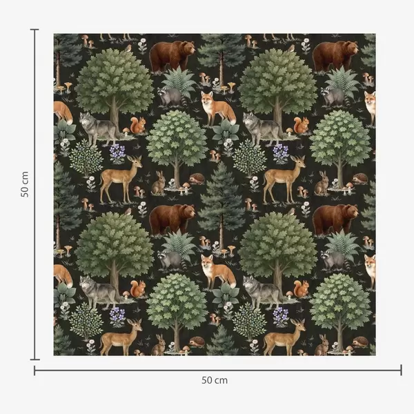 Tapet Skogsdjur i akvarell med träd och svampar Nr. a00391