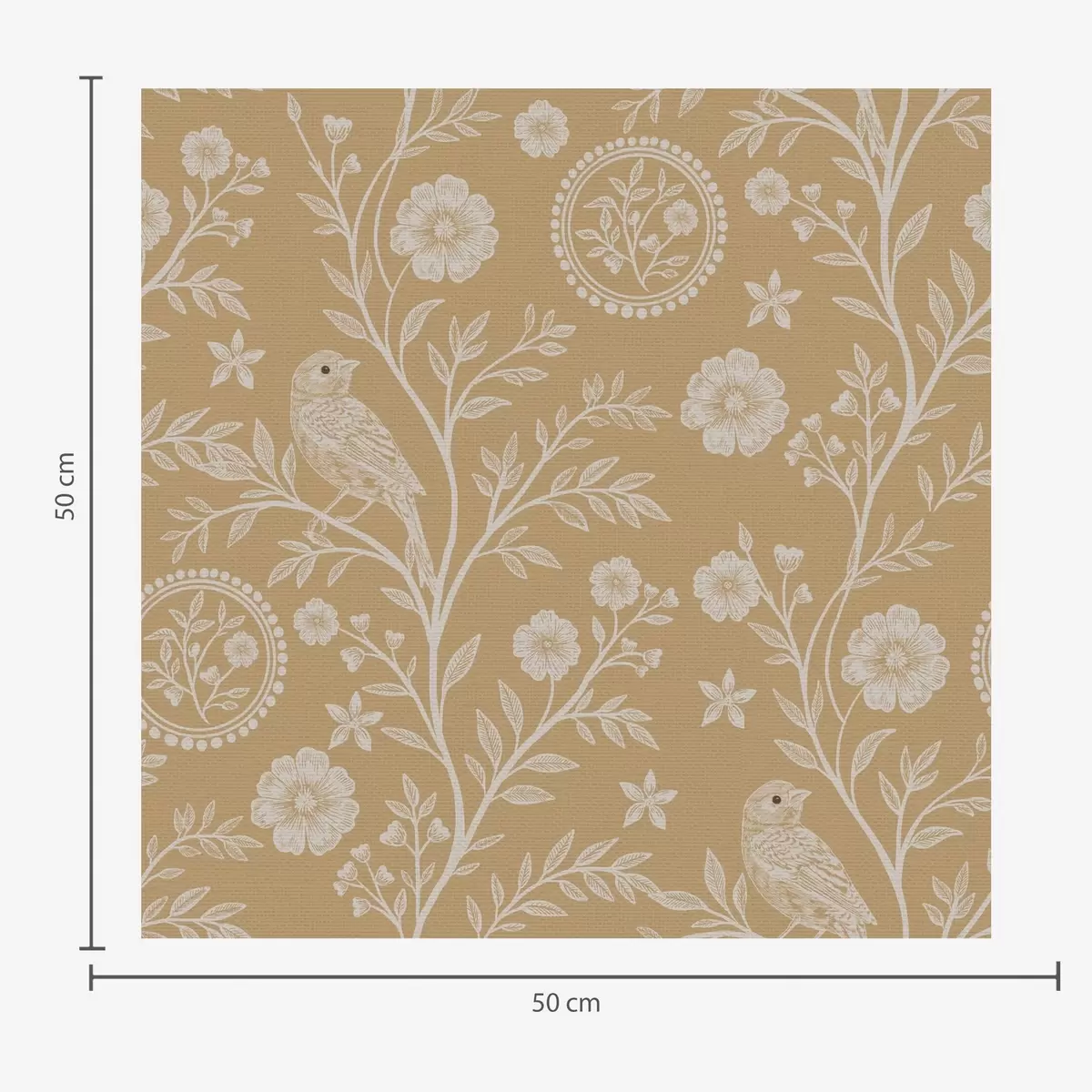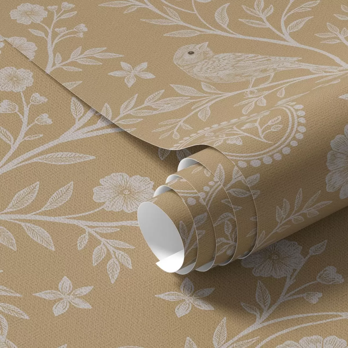 Tapet Delikat skiss av en vit fågel och blomma vit fågel och blomma på ockrafärgad bakgrund Nr. a00393