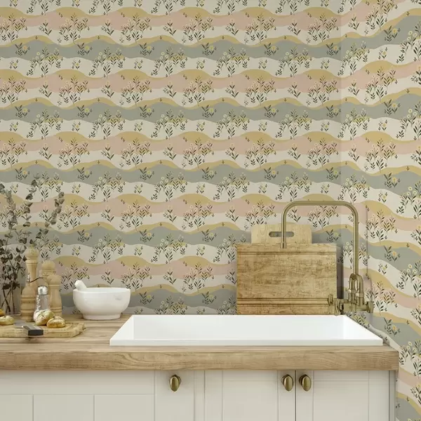 Tapet Vågiga ängsblommor i pastellig minimalistisk stil Nr. a00396