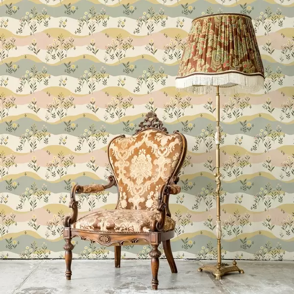 Tapet Vågiga ängsblommor i pastellig minimalistisk stil Nr. a00396