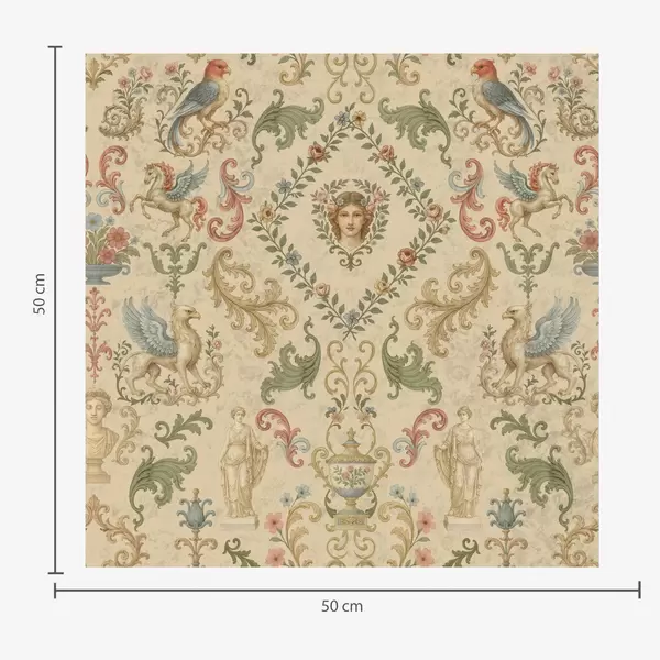Tapet Vintageprydnad med gripar, blommor och figurer Nr. a00402