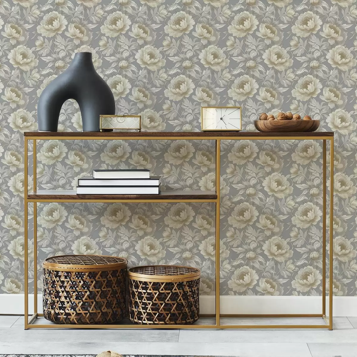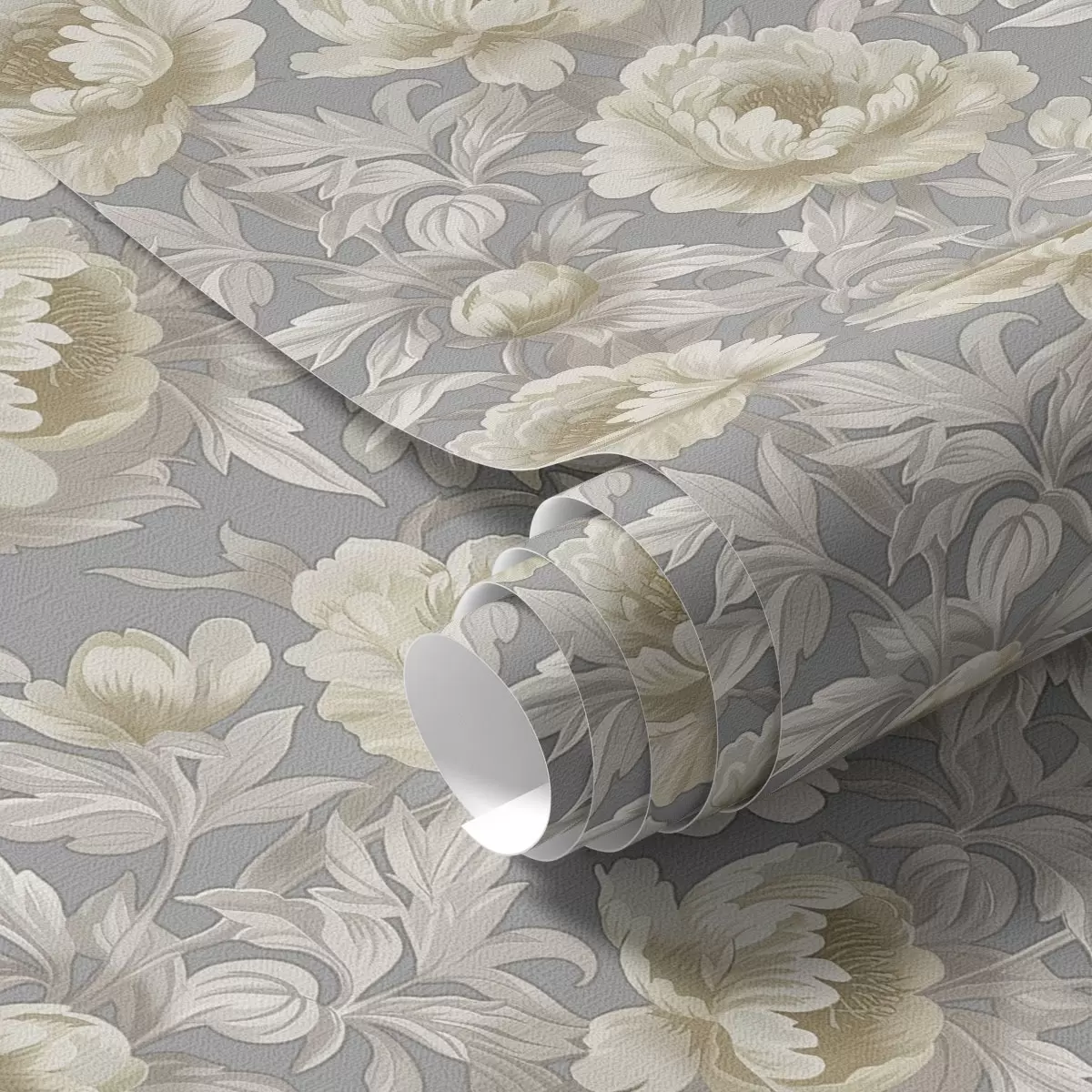 Tapet Frodiga pioner och blad på en grå bakgrund Nr. a00403