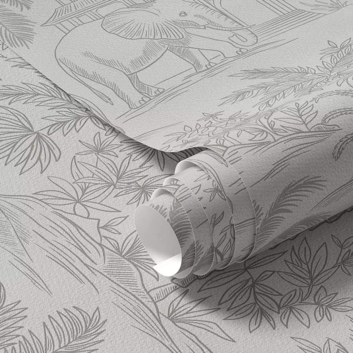 Tapet Monokroma elefanter och djungel i grafisk stil Nr. a00410