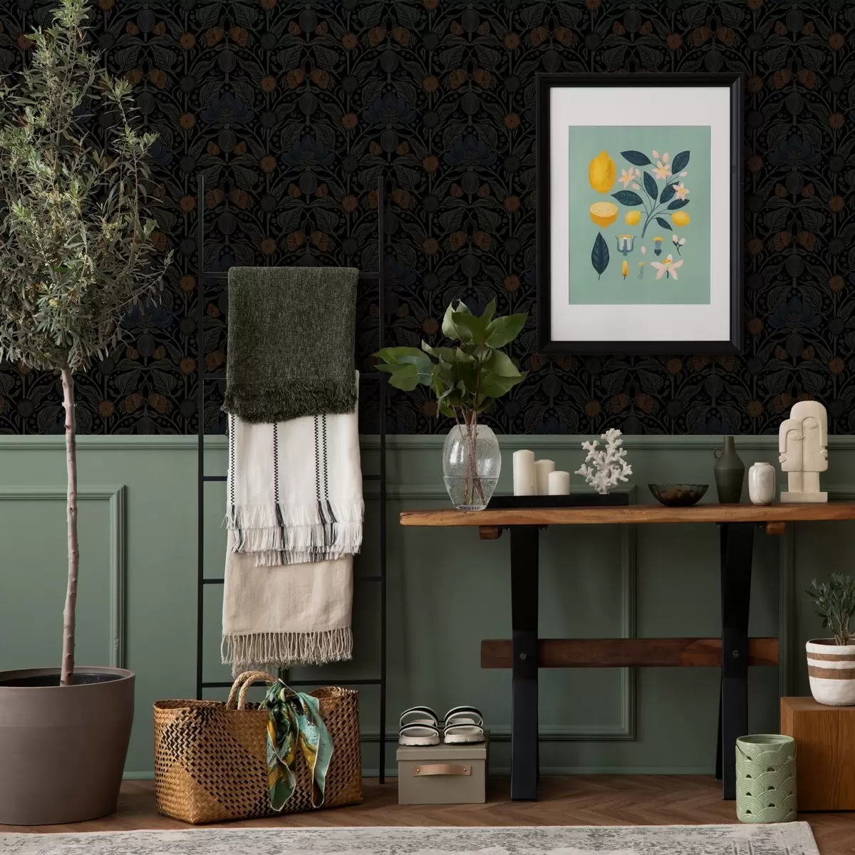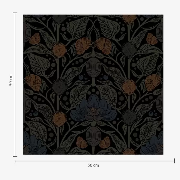 Tapet Mörkt blommigt prydnadsföremål med orange accenter Nr. a00411