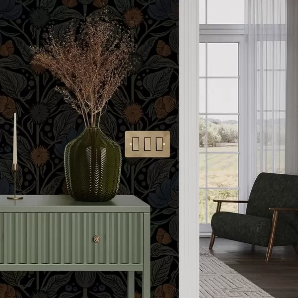 Tapet Mörkt blommigt prydnadsföremål med orange accenter Nr. a00411