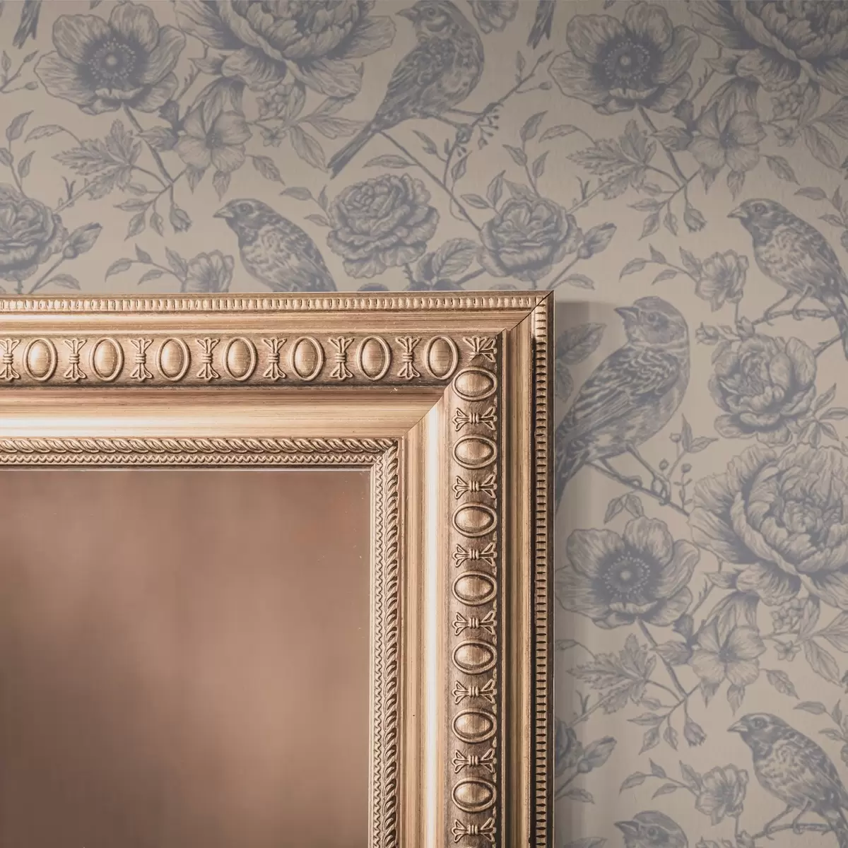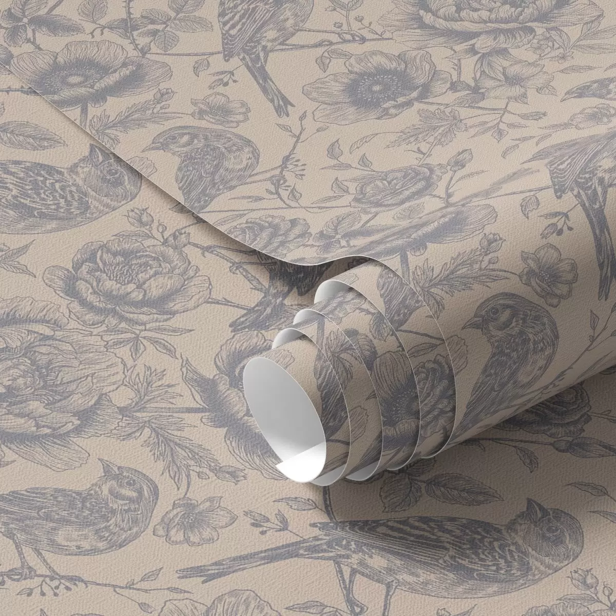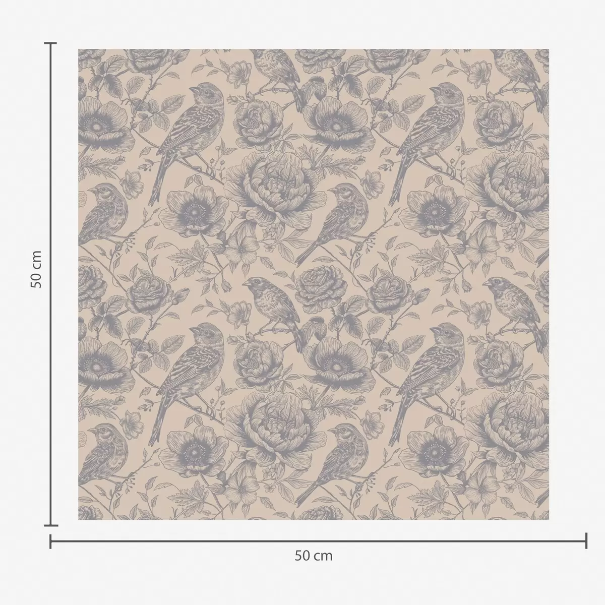 Tapet Vintagefåglar och blommor på en mjuk beige bakgrund Nr. a00423