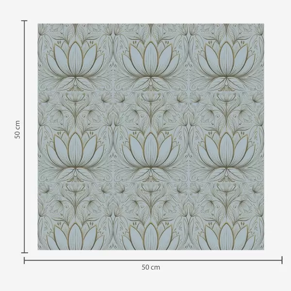 Tapet Lotusornament i turkos och gul färgskala Nr. a00439